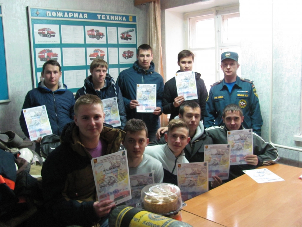 После выполнения всех заданий мокрые, уставшие, но вполне довольные собой, наши добровольцы собрались в классе пожарной части, где главный государственный инспектор города по пожарному надзору вручил им свидетельства о прохождении первоначальной подготовки пожарного.