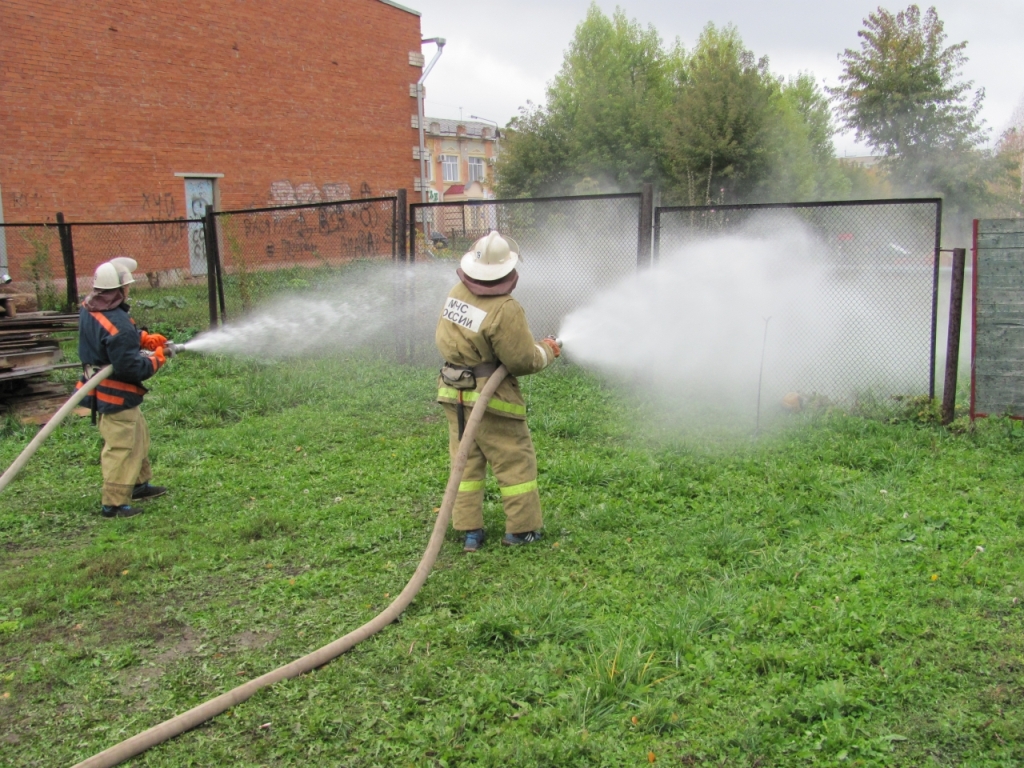 После ознакомительного занятия начались настоящие пожарные тренировки. Ежедневно в пожарной части отрабатывалось быстрое и правильное одевание одежды пожарного, тушение огня огнетушителем, прокладывание рукавной линии от пожарного автомобиля с подачей двух стволов на тушение пожара. Сразу получалось далеко не всё. Но ребята подобрались с характером, упертые, крепкие и, как оказалось, отступать перед трудностями не собирались.К итоговому занятию пожарные добровольцы уже умели самостоятельно в составе отделения из трех человек провести полное боевое развертывание от пожарного автомобиля и подать на тушение два ствола.