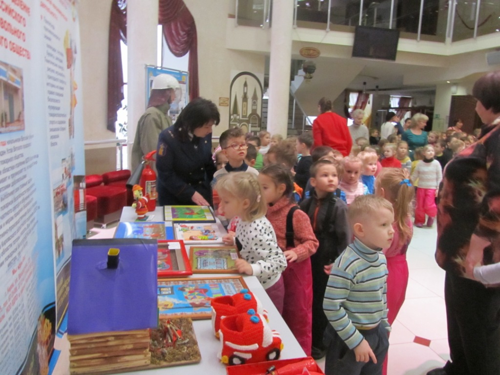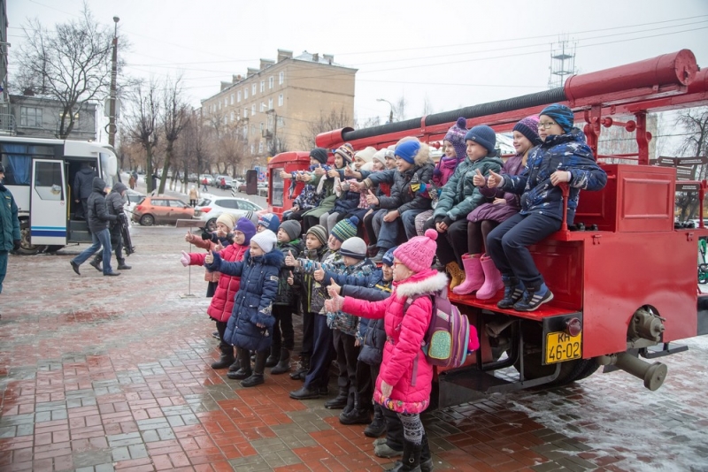 После спектакля ребят ждал еще один сюрприз! В фойе театра сотрудники МЧС и ВДПО организовали для них показ настоящей амуниции пожарных, а также пожарных стволов. Восторг у детей вызвал «огнеборец» — лафетный ствол, а чтобы примерить старинные пожарные каски, выстроилась целая очередь! Все желающие смогли сделать фото на память с Кузьмой Пожаркиным (ростовая кукла — огнетушитель) и увидеть творчество юных призеров областных конкурсов по пожарной безопасности на выставке регионального отделения ВДПО. У главного входа гости театра и просто прохожие могли посмотреть и прикоснуться к раритетной пожарной спецтехнике и узнать об истории пожарного дела на Вятке.