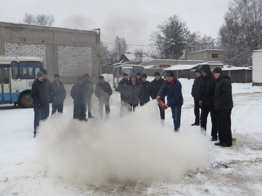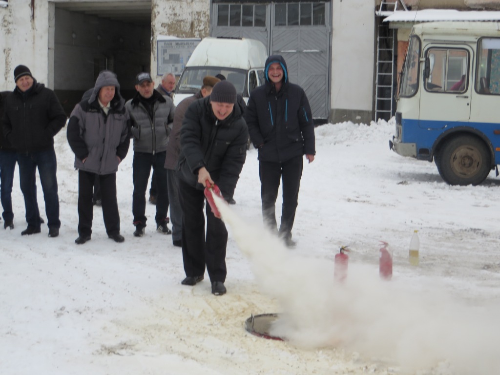 Инструктор по противопожарной профилактике Евгений Грошев рассказал водителям о правилах поведения при эвакуации пассажиров из общественного транспорта, а также о том, как важно обращать внимание при выезде из автопарка на состояние огнетушителя в салоне. Порой достаточно хлопнуть дверью автомобиля, чтобы огнетушитель сработал, или просто не обращать внимания на повышенное давление в нем. Многие негативные факторы и просто человеческая невнимательность могут привести к трагедии. Поэтому после теоретической части перешли к отработке практического применения огнетушителя. Водители автопарка с помощью ручного огнетушителя пробовали потушить условный очаг возгорания. На территории автопарка есть собственная заправочная станция и сотрудники должны уметь пользоваться и передвижным огнетушителем. Е.Грошев показал его в действии и объяснил, как правильно его применять. Профессия водителя требует постоянного внимания к технике, а водитель общественного транспорта отвечает за безопасность перевозки людей, поэтому так важно помнить об элементарных правилах безопасности и регулярно обновлять знания и навыки.